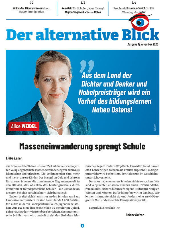 Das alles hat an unseren Schulen nichts zu suchen. Wir sind verpflichtet, unseren Kindern einen unverhandelbaren Raum zu sichern für unsere eigene Kultur: für Neugier, Wissen und Können. Dafür kämpfen wir im Landtag. Wir lehnen Islamunterricht ab und fordern eine Asyl-Obergrenze Null und eine echte Remigrationspolitik.