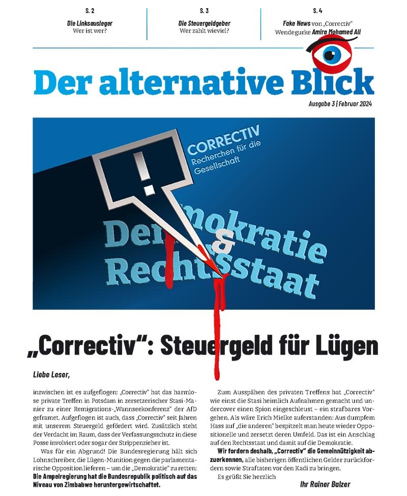 Aufgeflogen ist auch, dass „Correctiv“ seit Jahren mit unserem Steuergeld gefördert wird. Zusätzlich steht der Verdacht im Raum, dass der Verfassungsschutz in diese Posse involviert oder sogar der Strippenzieher ist. Was für ein Abgrund! Die Bundesregierung hält sich Lohnschreiber, die Lügen-Munition gegen die parlamentarische Opposition lieferen – um die „Demokratie“ zu retten: